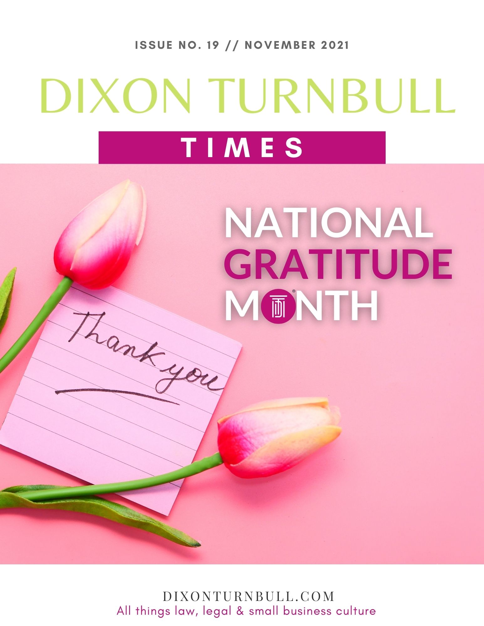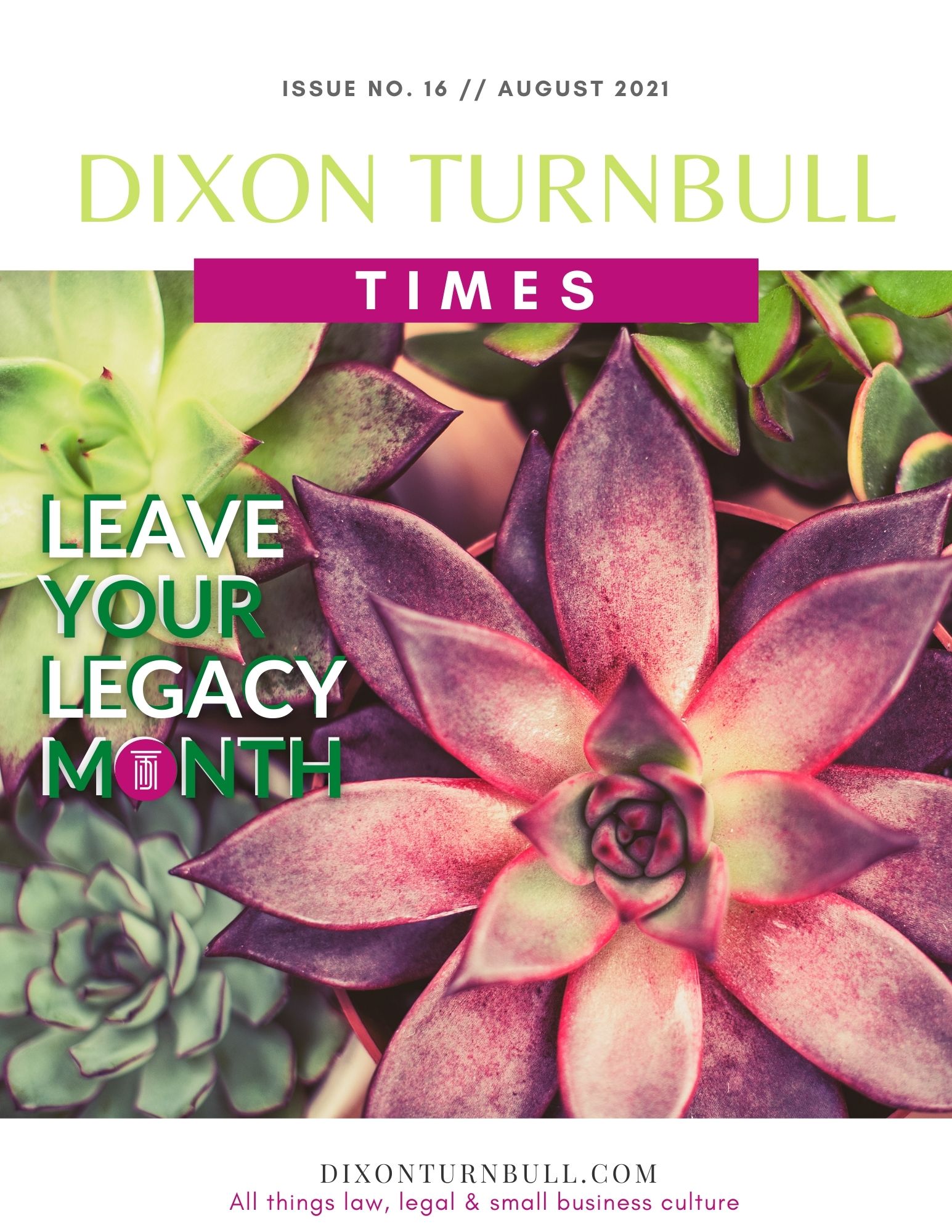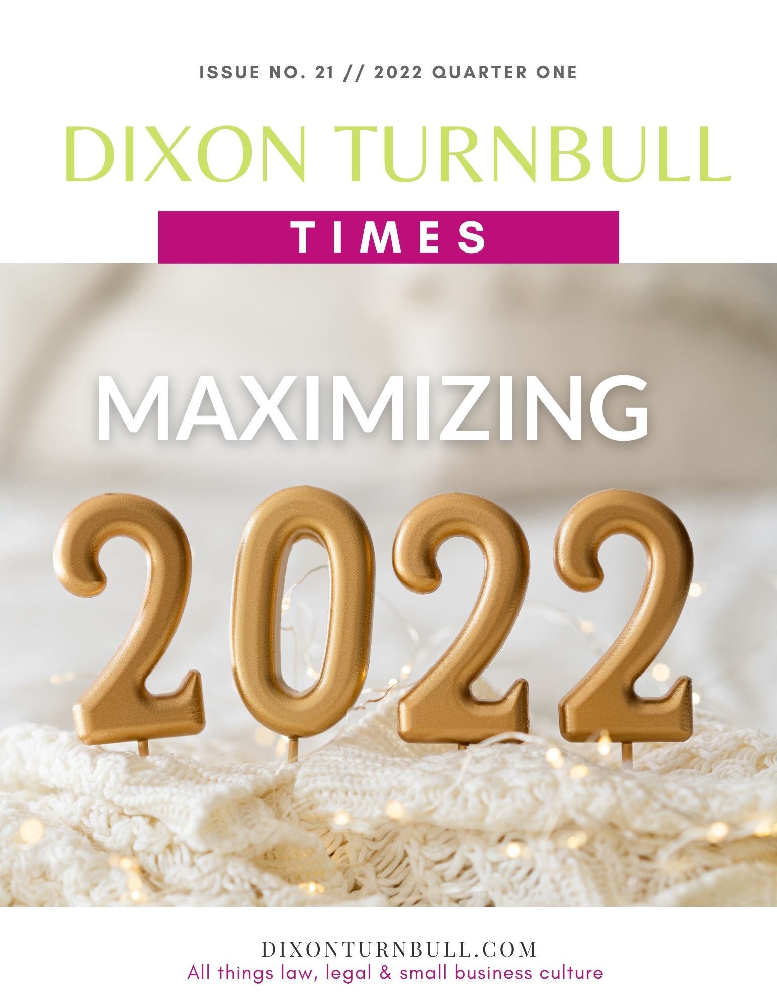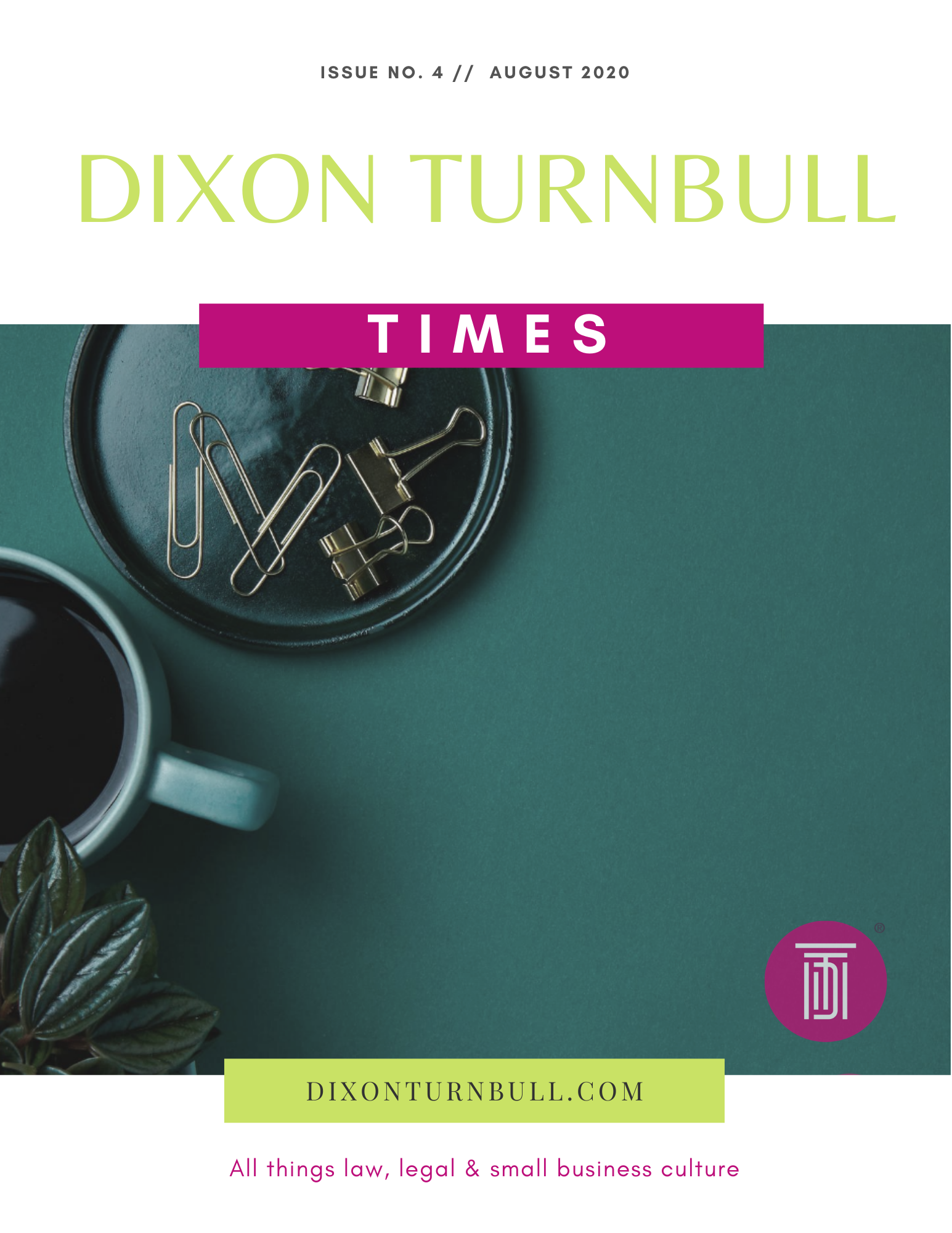Dixon Turnbull Times is a business magazine with curated content specifically tailored to our clients. The magazine presents different perspectives on current affairs, law, small business culture and entrepreneurship through the lens of an attorney. We hope you enjoy the contents. Please feel free to let us know what issues are most important to you so we may focus the content on that which would be most informative.